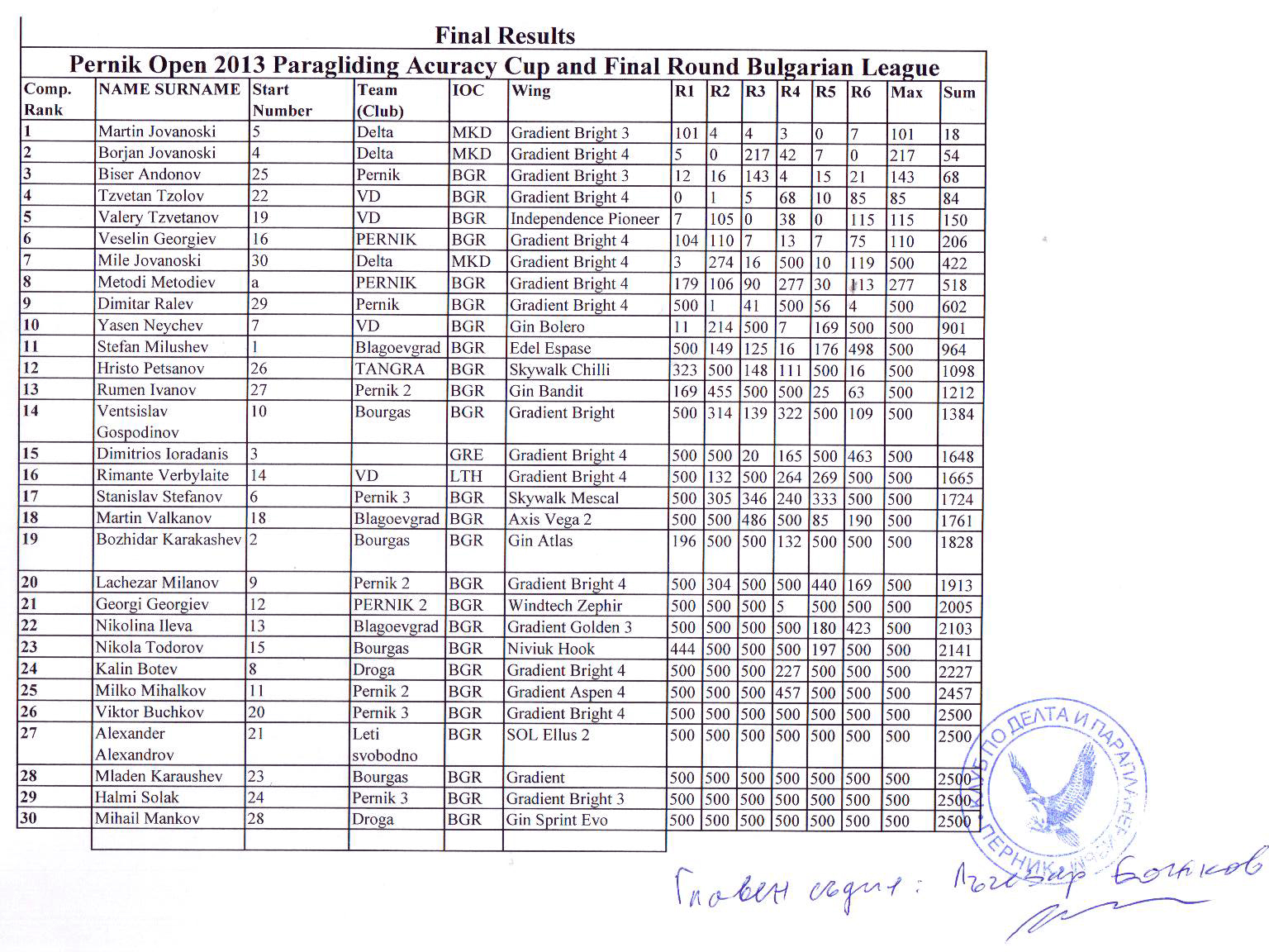 Но ништо не се виде од тоа, кога настапија нашите Македонски Параглајдеристи од Параглајдинг клуб-ДЕЛТА-Прилеп. Едноставно браката ЈОВАНОСКИ, (Мартин и Борјан) им одржаа лекција во овој спорт. Имено во комплетен состав на Националноит тим на Бугарија кој е второпласиран на последното Светско првенство, заедно со Европскиот Првак Димитар Ралев, едноставно само немо следеја како дома на домашен терен им е одземено 1-место од Мартин Јованоски и 2-место од помладиот брат ,(кој од натпревар на натпревар е се подобар) Борјан Јованоски. Третиот наш натпреварувач искусниот Миле Јованоски исто така беше високо пласиран на 7-место, за се заедно во Екипна конкуренција го заземат 2-место.
